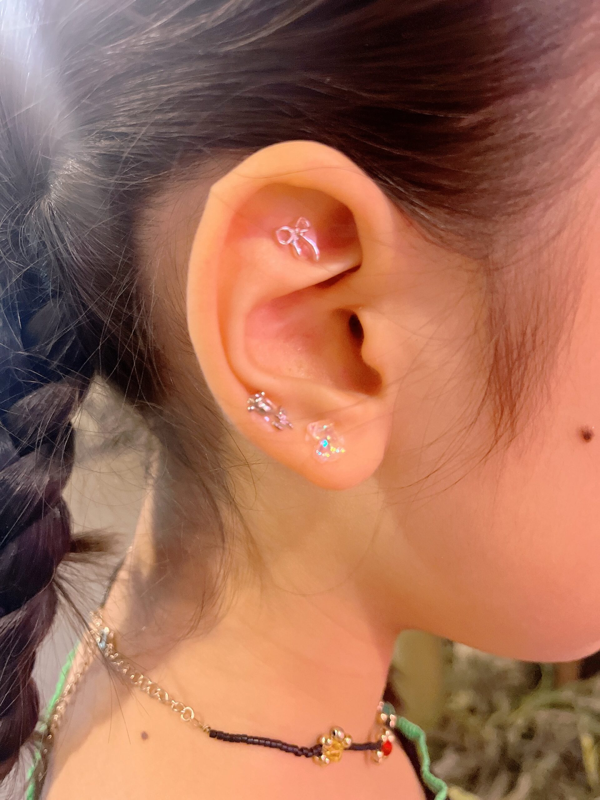 頭痛や肩こり、眼精疲労、内臓の不調・ダイエットなど様々なお悩みをかわいくオシャレにサポートする耳つぼジュエリーは耳マッサージ&ツボ押し付きです。キッズメニューもあります⭐︎